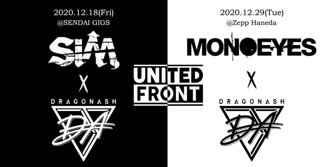 2018年に立ち上げた盟友達との対バンツアー「UNITED FRONT」を2年振りに開催! 今回は仙台・東京2公演のみですが、5人体制となったDragon Ashとしての初ツアーとなります。 仙台公演にSiM・東京公演にMONOEYESを迎え、共に有観客ライブ。 (東京公演のみリアルタイム配信あり) DRAGONASH LIVE TOUR 「UNITED FRONT 2020」 Dragon Ash / SiM 2020年12月18日(金) 仙台 GIGS 開場 18:00 / 開演 19:00 Dragon...